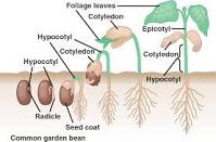Dicotyledon plants have two cotyledons. In their embryo`s development, epicotyls and hypocotyls ar formed. Epicotyls are located above the cotyledon. The tip of the epicotyls is called the plumule, which is foliage of leaves. Hypocotyls are located below the cotyledon. They end at the radical. Monocots have only a single cotyledon.in some monocots, the cotyledon is called a scutellum. It is thin and the endosperm suppresses where it is positioned. The scutellum absorbs nutrients from the endosperm during germination. The embryos of grass plants are surrounded by coleorhizae and coleoptiles. Coleorhizae protects the radical and the coleoptiles protects leaves and stem primordia